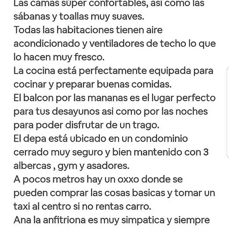 Pokoj má TV s plochou obrazovkou se satelitními kanály, přístroj na přípravu kávy a čaje, místnost na posezení, kuchyňské vybavení zahrnuje také mikrovlnnou troubu, chladničku a kuchyňské nádobí. Apartmán se skládá z 3 ložnic a 2 koupelen vybavených sprchou, fénem a osuškami. Povlečení a hypoalergenní polštáře jsou k dispozici v apartmánu Casa Balam Exclusivo Y Amplio Departamento.